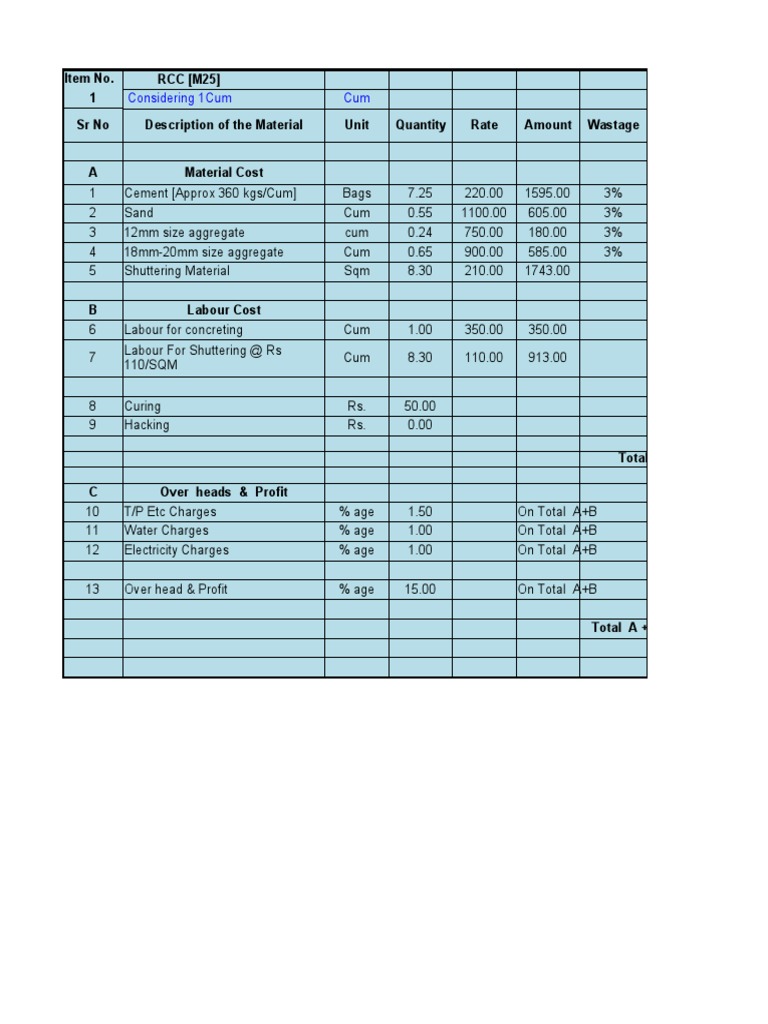 How To Calculate Rate Analysis Of M25 Grade Concrete